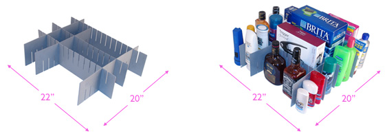 tall items like bottles from falling over. They can be easily reconfigured and customized for how you