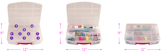 kids have managed to build up a small pharmacy in their trays. They have 10 compartments and a lid that